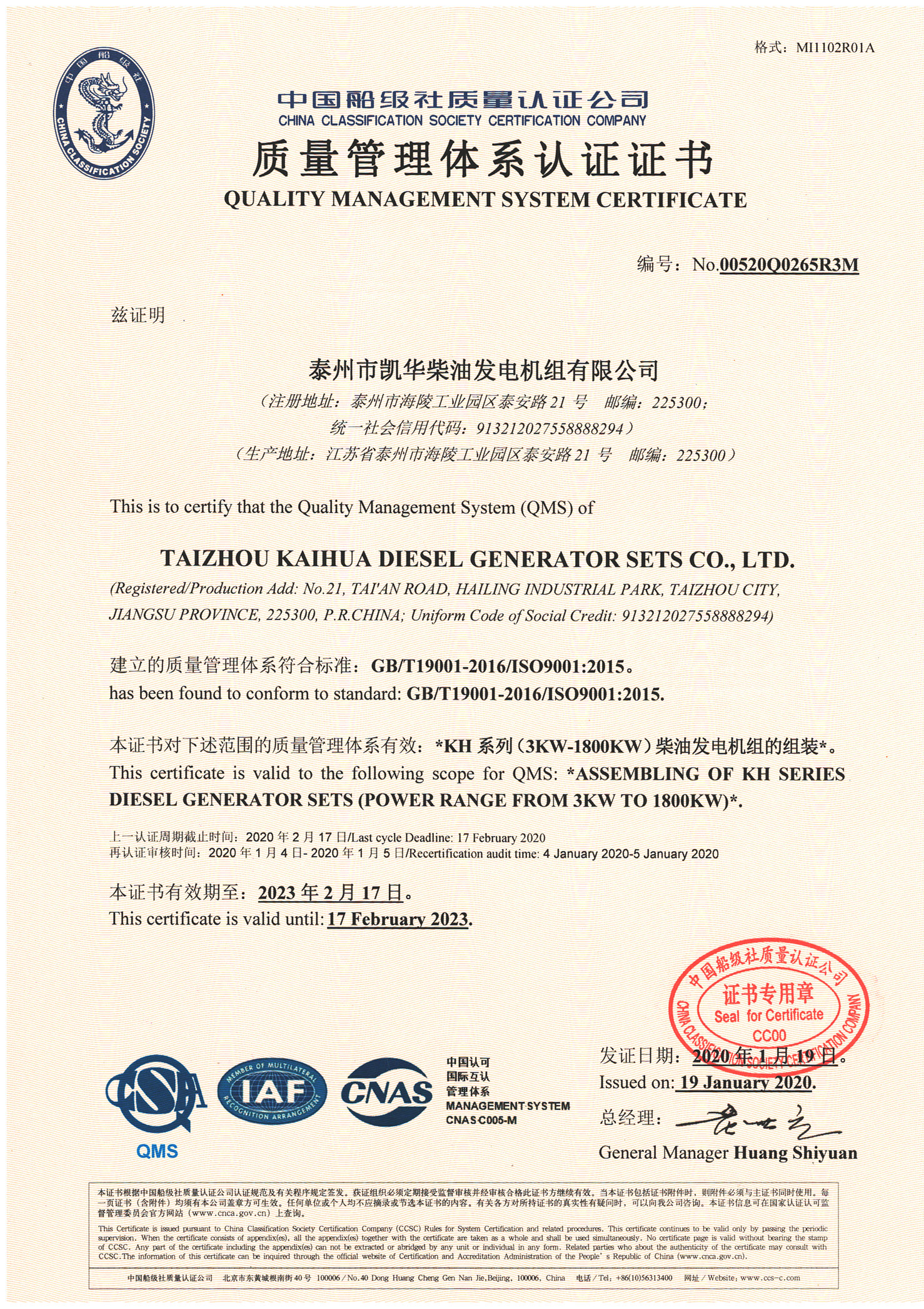 泰州市凱華柴油發(fā)電機組有限公司創(chuàng)建于2003年,是一家集柴油發(fā)電機組燃氣發(fā)電機組的研發(fā)、生產(chǎn)、銷售為一體的高新技術(shù)民營企業(yè),公司座落于“漢唐古郡,淮海名區(qū)”,具有“鳳凰城”美稱的祥泰之州——江蘇省泰州市,地處中國經(jīng)濟最發(fā)達的長三角經(jīng)濟圈,水陸空立體交通,地理位置十分優(yōu)越。公司目前注冊資本金11800萬元人民幣,生產(chǎn)基地占地六十畝,現(xiàn)有各類高素質(zhì)員工一百多名,專業(yè)技術(shù)人員達46人,其中高級技術(shù)人員16人,年銷售額近6億元。 公司主營產(chǎn)品:3~3000KW陸用柴油發(fā)電機組,15~600KW移動拖車電站,12~1000KW船用應(yīng)急柴油發(fā)電機組,各種靜音型、中高壓、多機并聯(lián)、燃氣等特種機組以及進口系列柴油發(fā)電機組,可滿足不同客戶的一切電力需求,還可滿足用戶不同電壓、不同頻率的要求。凱華公司是康明斯品牌的授權(quán)代理商,專業(yè)生產(chǎn)供應(yīng)康明斯柴油發(fā)電機組。